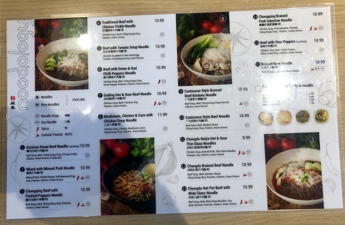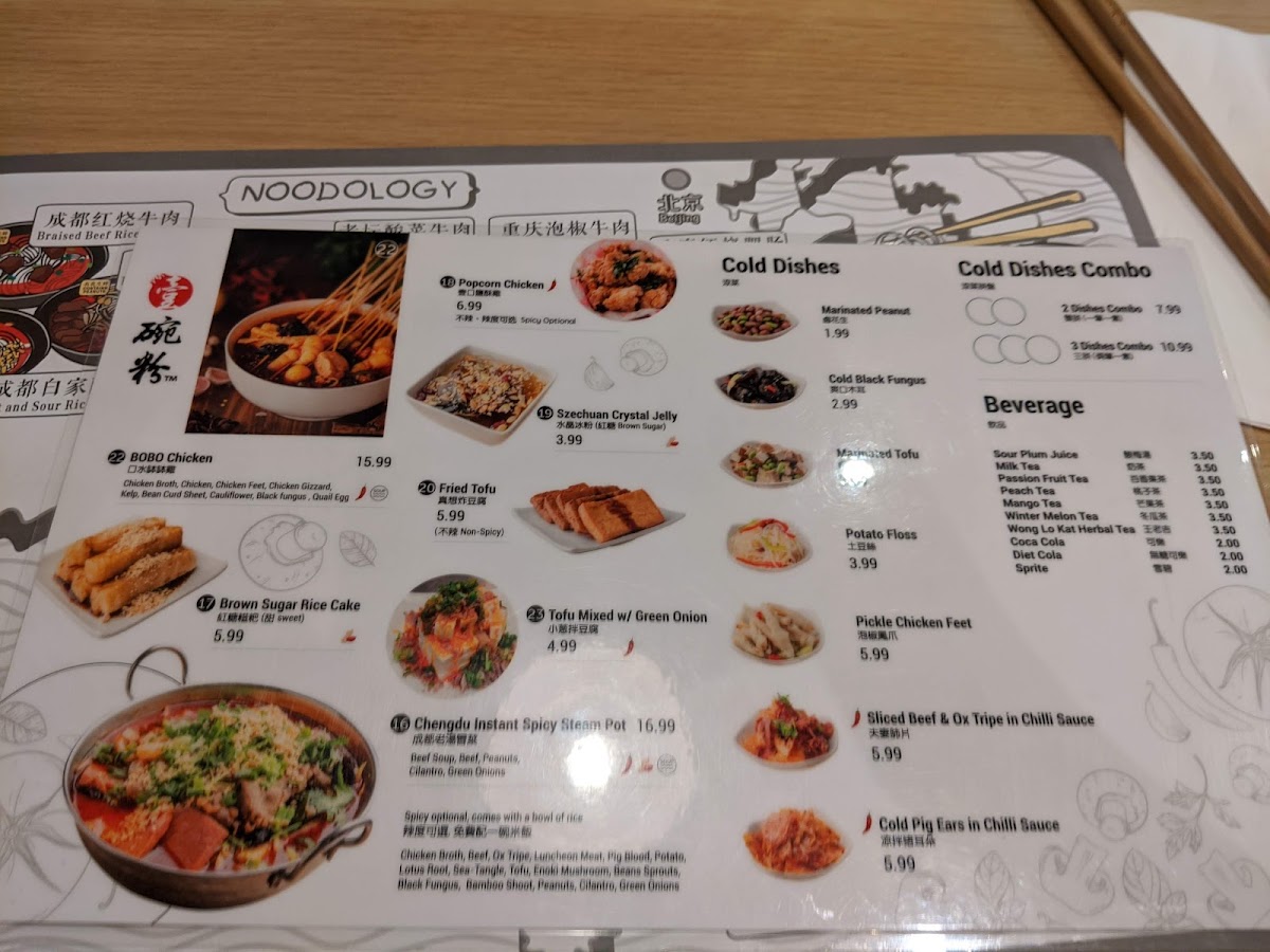 Noodology offers a thoughtfully curated menu that centers around authentic Chinese noodles and comforting dishes designed for casual dining or delivery. The selections range from rich noodle soups like the Spicy Beef Noodle Soup and Beef with Tomato Soup Noodle to savory small plates such as popcorn chicken and marinated peanuts, perfect for sharing or enjoying alongside a warm bowl.